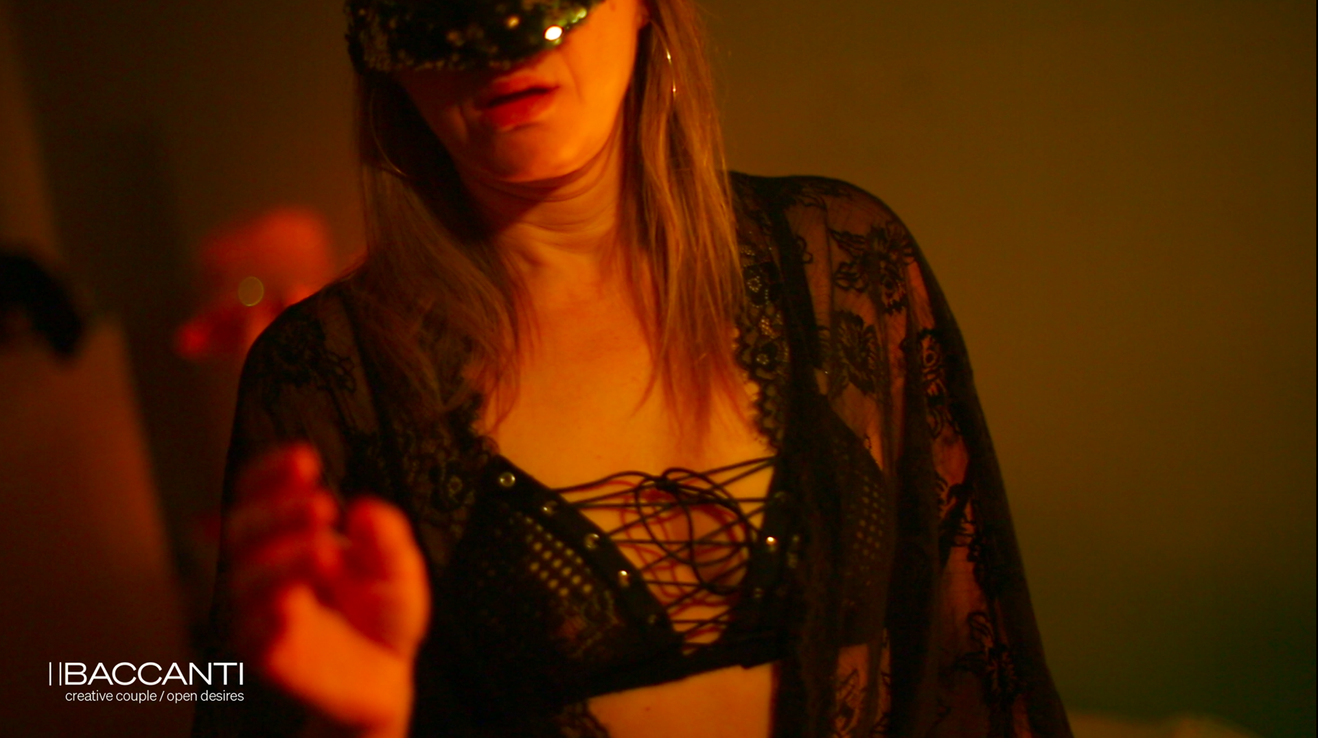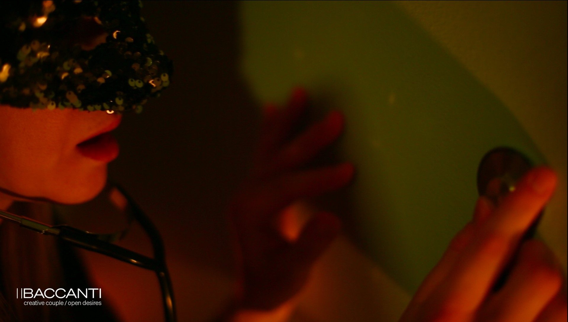 In a apartment room bathed in warm, asymmetric light, a woman wearing a unicorn mask presses a stethoscope against the wall. Thus begins a suspended nocturnal ritual: a silent listening to muffled moans, confused breaths, and indistinct sounds from a dimension beyond the real. The medical instrument — the stethoscope — becomes a transcendental tool that blurs the boundaries between inside and outside, leading intimacy toward a mysterious, desirous horizon.